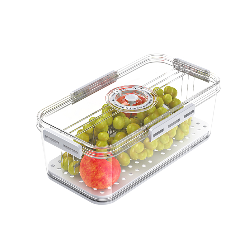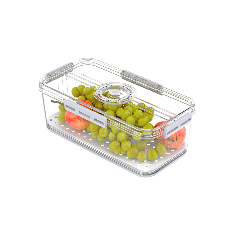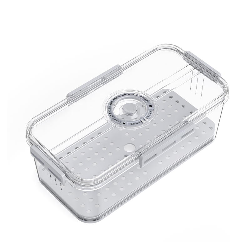 När det gäller design tillåter den stapelbara designen flera lagringslådor att staplas ordentligt, spara kylskåp, optimera matlagring och underlätta klassificering och hantering av olika typer av mat. Många husdjurslagringslådor är utrustade med dräneringsbrädor, som effektivt kan skilja fast mat och vätska, förhindra att mat förstörs på grund av överdriven fukt, vilket säkerställer torrhet och färskhet i maten och förlänger hållbarheten. Tätningslockkonstruktionen är också mycket viktig, vilket kan förhindra att luft och fukt kommer in, upprätthåller matens friskhet, förhindrar spridning av lukt och håller kylskåpets inre rent och hygieniska.